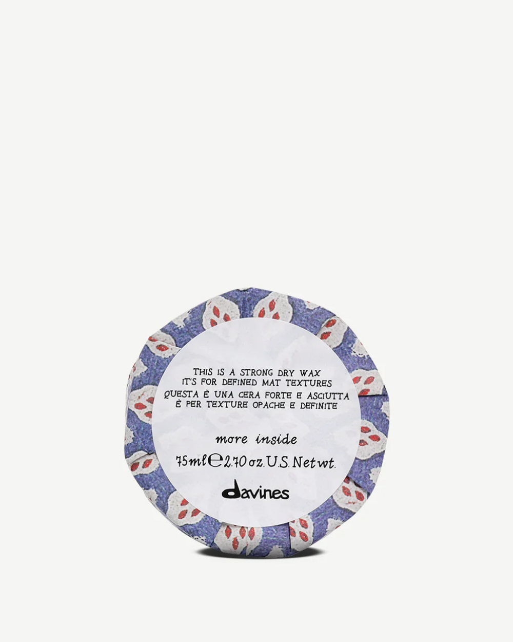 Сухой воск обладает фактором экстра-увлажнения и фактором отсутствия хлопьев благодаря каолину, порошку из осадочной горной породы, и пчелиному воску натурального происхождения, используемых для моделирующей способности и поддержки стайлинга.