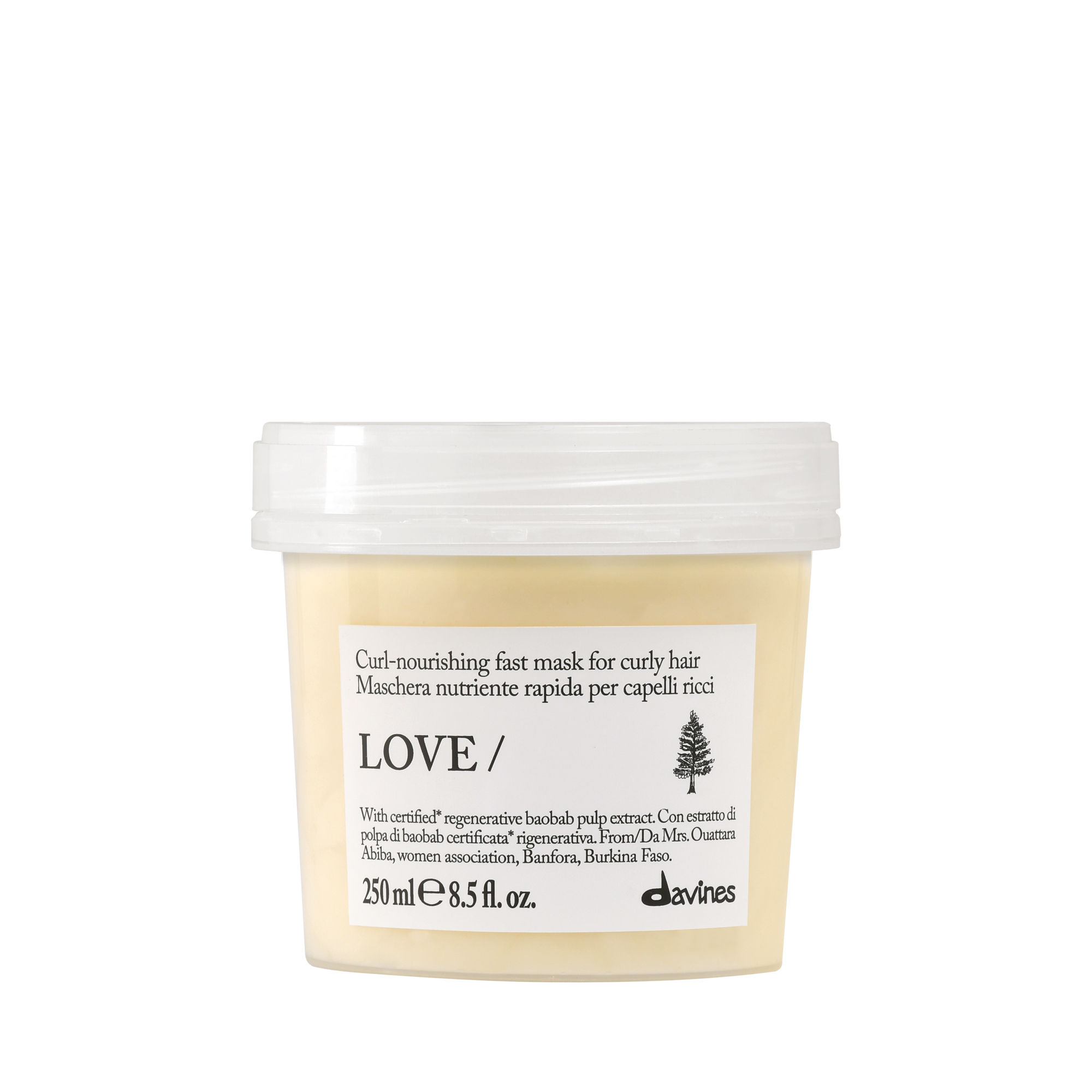 Баобаб, богатый растительным слизистым веществом и белками, которые помогают усилить эластичность и четкость локонов, придавая волосам упругость и восстанавливая их изнутри.