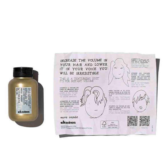 Мгновенно придает объем у корней, не утяжеляет волосы. Становится невидимой после распределения по волосам. Контролирует текстуру волос. Формула с низким содержанием смол придает естественный объем без утяжеления. Можно использовать как отдельно, так и в сочетании с другими продуктами.